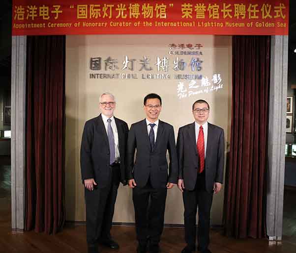 “國際燈光博物館”的前身是“光之力量”(The Power of Light)博物館,它的創始人是《舞臺燈光》(《Stage Lighting》)一書的作者、以色列著名舞臺燈光設計師Dan Redler。2016年廣州市浩洋電子股份有限公司董事長蔣偉楷將其帶到中國,并不斷為博物館加入和完善東方元素尤其是中國專業燈光歷史元素,進而形成了如今的“國際燈光博物館”。     2017年2月,中國舞臺美術學會會長曹林,國際舞美組織前主席、美國斯坦福大學教授Mr. Michael Ramsaur正式受聘為浩洋電子“國際燈光博物館”榮譽館長,這為促進博物館大發展、推動在全球范圍內的合作共建奠定了良好基礎,也為推進浩洋電子與國際舞美組織和中國舞美學會的進一步深度合作打開了新的局面,相信兩位榮譽館長加入參與博物館的管理與建設,必將引領國際燈光博物館未來發展邁向新臺階,為推動國內外戲劇燈光歷史傳承與發展、推進科技與文化藝術的融合發揮更大作用。