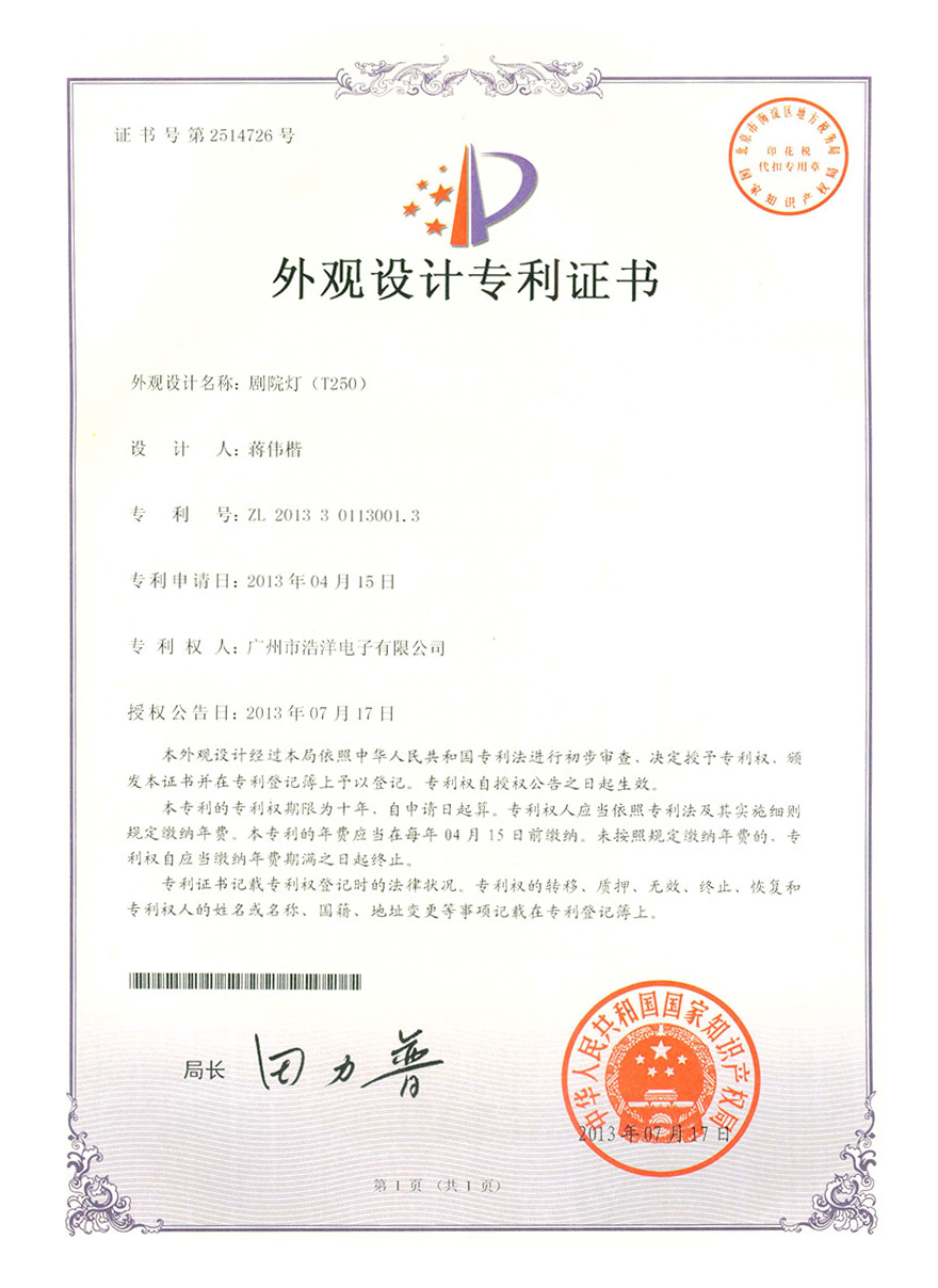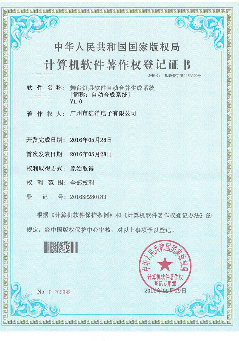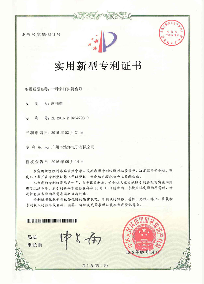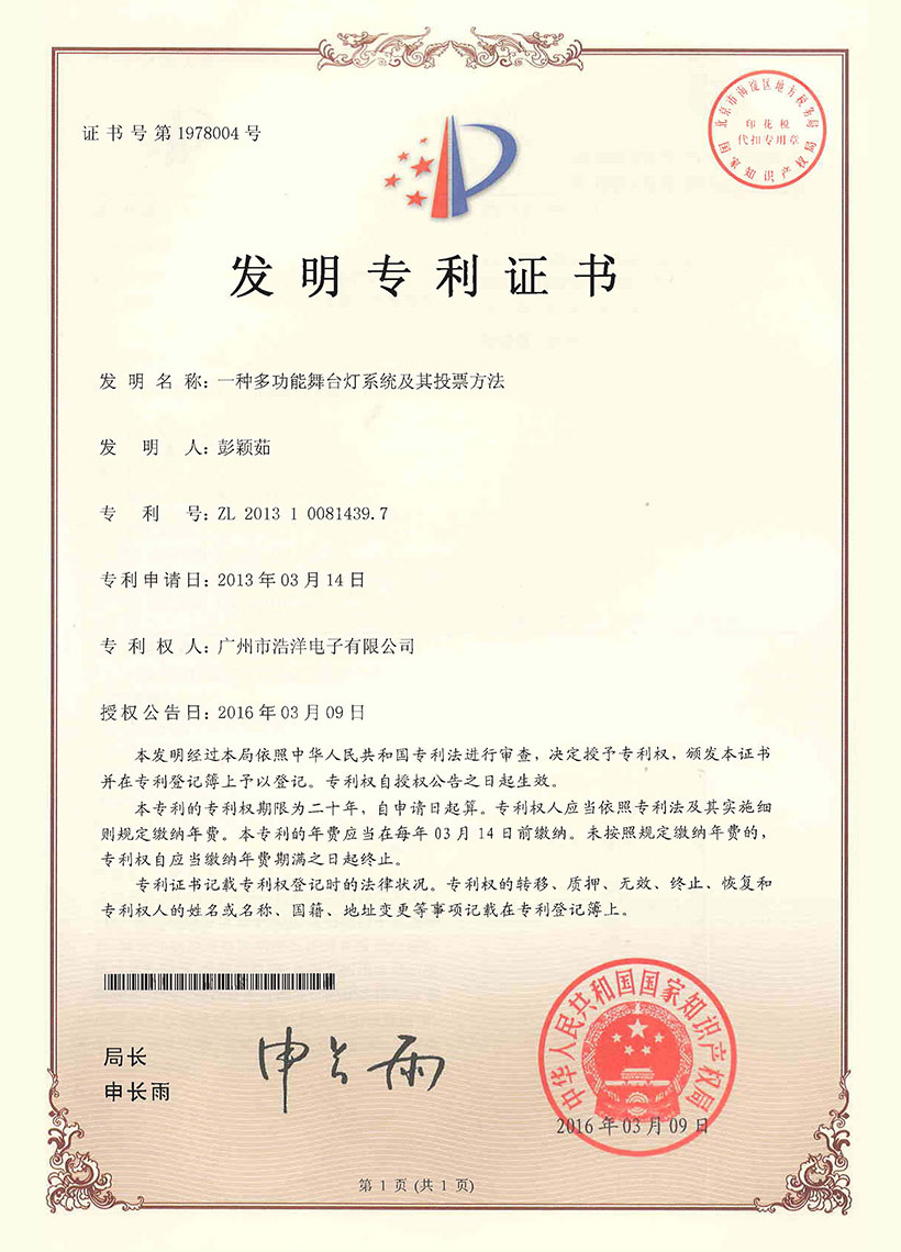 依托100多人的核心研發團隊、5000多平方米廣東省演藝燈光工程(研發)中心,以及持續的巨額研發投入,公司及子公司累計取得了“發明專利”、 “外觀設計專利”、“實用新型專利”、“計算機軟件著作權登記”等境內外專利300余項,專利保有量行業領先!