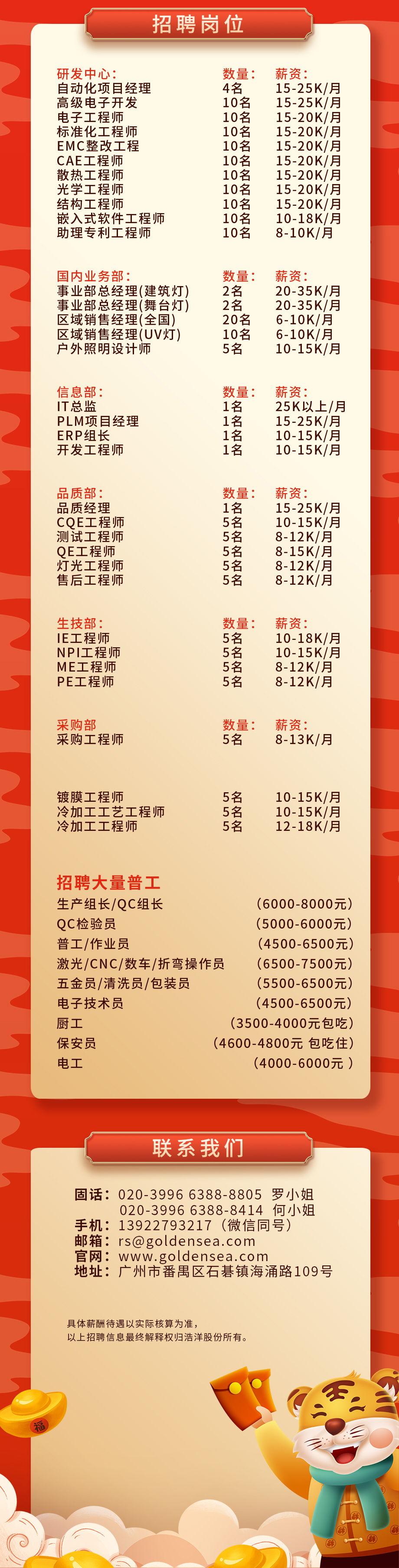 • 極具競爭力福利體系 本企業著落番禺市蓮路,地鐵旁,交通方便,擁有舒適的辦公環境,現代化的辦公、生產設備。 公司舒適優雅的員工宿舍、整潔明亮的自助式飯堂,各式美味滿足每個員工的需求。 企業以人為本,為員工購買社會保險,住房公積金。特設立企業愛心基金,專為有困難的員工提供援助。 公司成立了黨、工、團委員會,公司讓員工跟隨公司的發展,參與到各項黨、工、團活動。 員工享受各法定節假日,享受節日福利。公司定期組織豐富多彩的企業文化活動,如年度表彰暨文藝匯演、羽毛球賽、辯論賽、棋牌賽、籃球賽、年度旅游、員工生日會等各項文化活動。讓員工有“如家”的感覺。