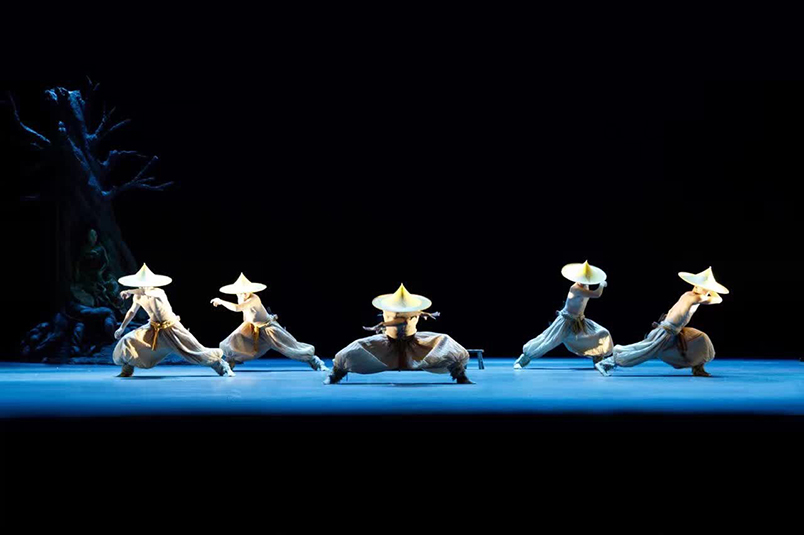 《巫卡調恰》的漢語意思是外婆的歌謠,這部舞蹈詩的創作植根于當地苗族文化,又拓展到整個苗族社會,通過巫卡(外婆)吟唱古歌這一主線,詮釋了苗族遷徙史以及苗族社會生活的各種習俗,具有強烈形式感和邏輯性。