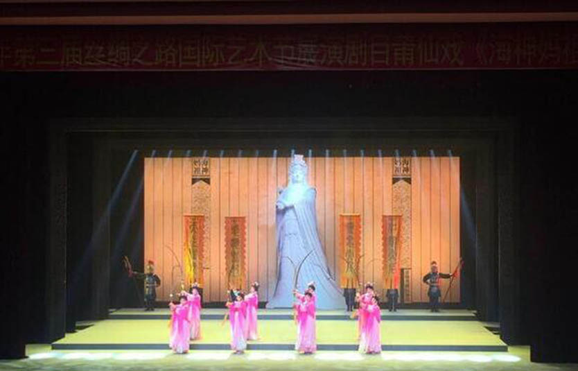 現代的燈光音響,色彩艷麗的戲裝,清悠婉轉的唱腔,古今融合的莆仙戲在2016年第三屆絲綢之路國際藝術節散發奪目光彩,在場觀眾如癡如醉地欣賞《海神媽祖》劇目,沉醉在媽祖娘娘正能量的無私精神里。