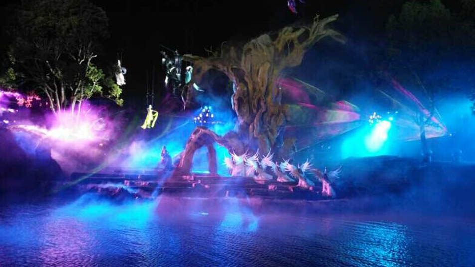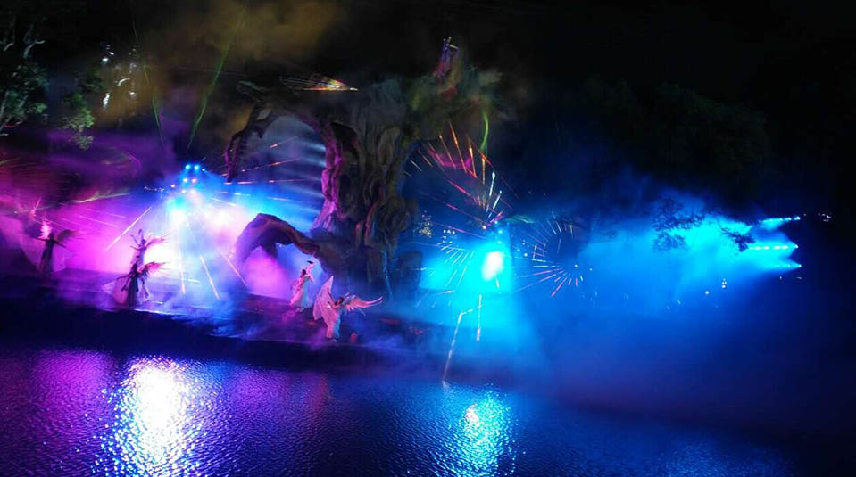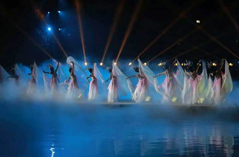 為了打造出槳聲燈影、美輪美奐的演出效果,浩洋燈光的300多臺三合一電腦燈擔起了重任,強大的光束、染色與圖案功能組合和極富空間感的藝術表現力,打造出亦真亦幻的時空幻境。