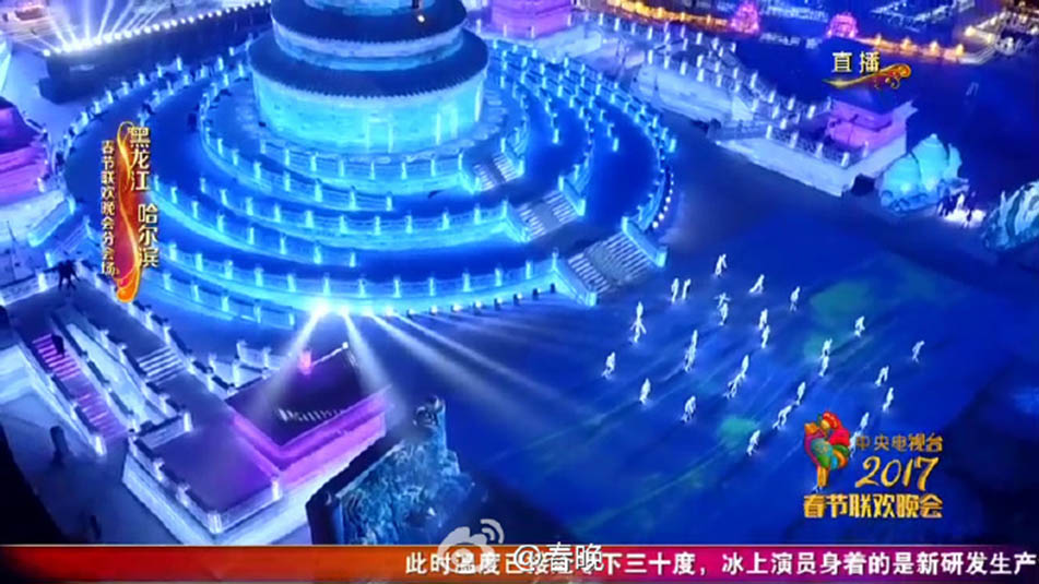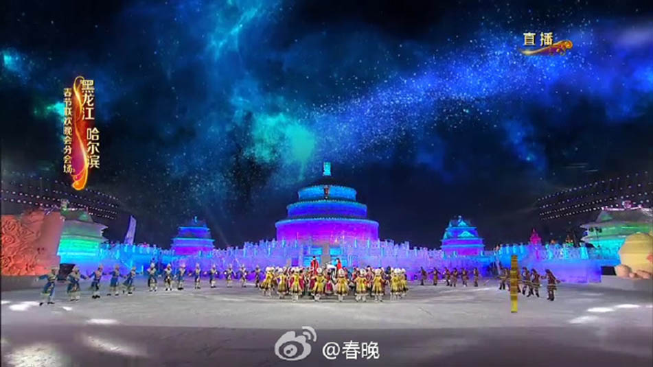 哈爾濱分會(huì)場(chǎng)以“天壇祈年殿”為原型,故宮角樓為配景,將四組雪雕作為前景,共同組成360度無(wú)死角的冰舞臺(tái)。舞臺(tái)上設(shè)置能自由連通的不同空間,使人與冰雪增加更多維度的交流互動(dòng),配合上色彩和節(jié)奏,打造成一個(gè)如夢(mèng)似幻的冰雪童話世界。