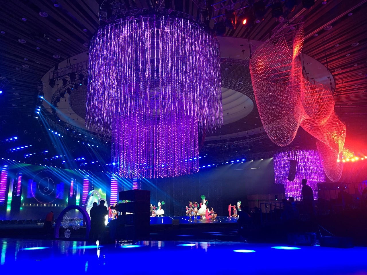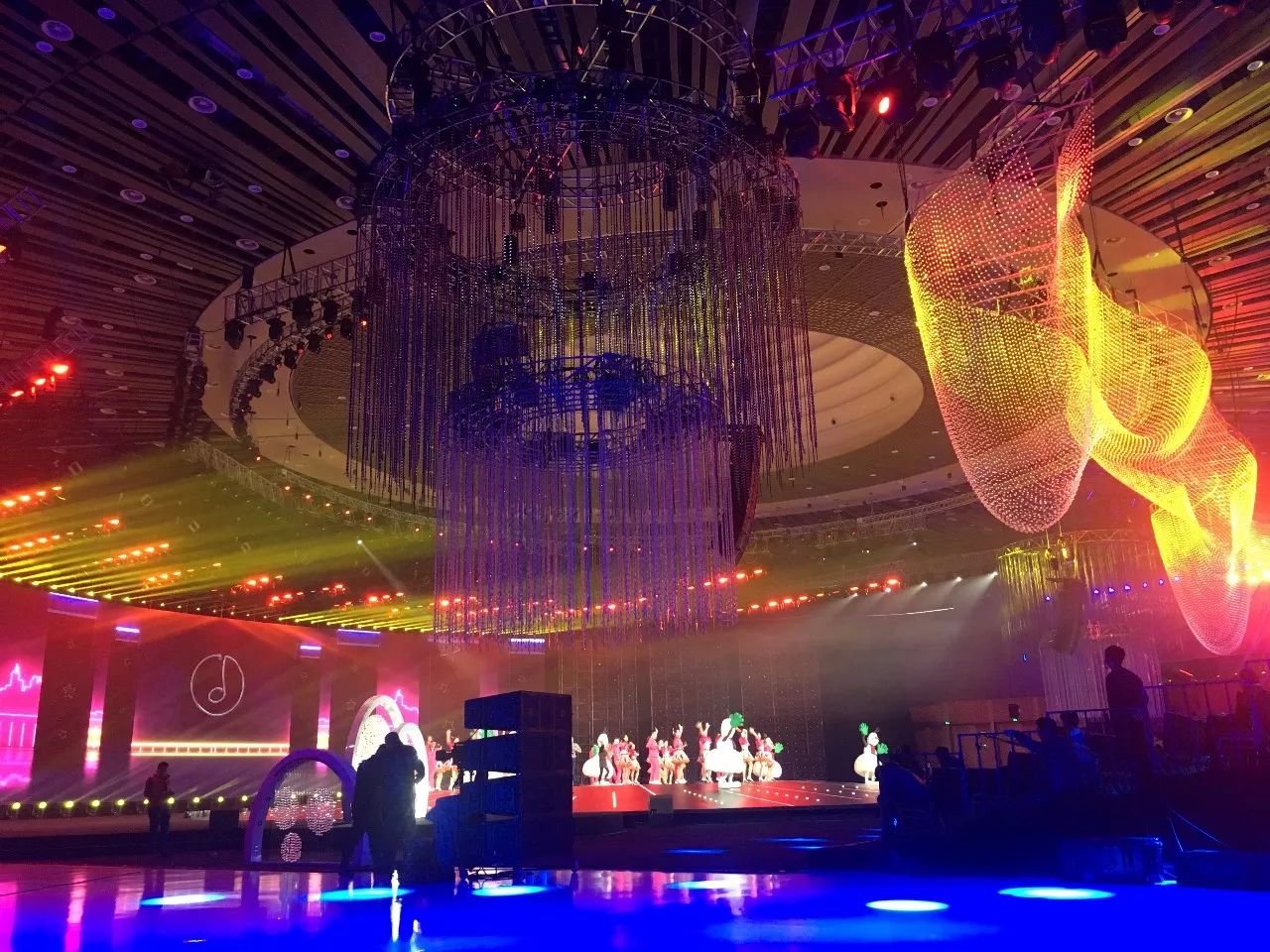 2018年,央視繼續(xù)不走尋常路,首次走出演播廳,舉辦地落戶了雁棲湖,并于2017年12月31日20:00在CCTV1、CCTV3、CCTV4三臺聯(lián)播。此次由北京東語華星文化藝術(shù)有限公司傾力打造的晚會,主題為《啟航2018》,云集了眾星加盟,在舞臺上詮釋“國”“家”“情”“美”。另外,晚會實現(xiàn)了娛樂與文化的融合,通過不同的表演形式將2017年的國家大事件在舞臺上表現(xiàn)出來,浩洋電子專業(yè)舞臺燈光產(chǎn)品光束燈V2000B、LED搖頭染色燈GLW7QZ、光束燈PT189B等也為晚會提供有力的燈光支持,為全國觀眾帶來一場漲知識又有視覺享受的新年晚會。