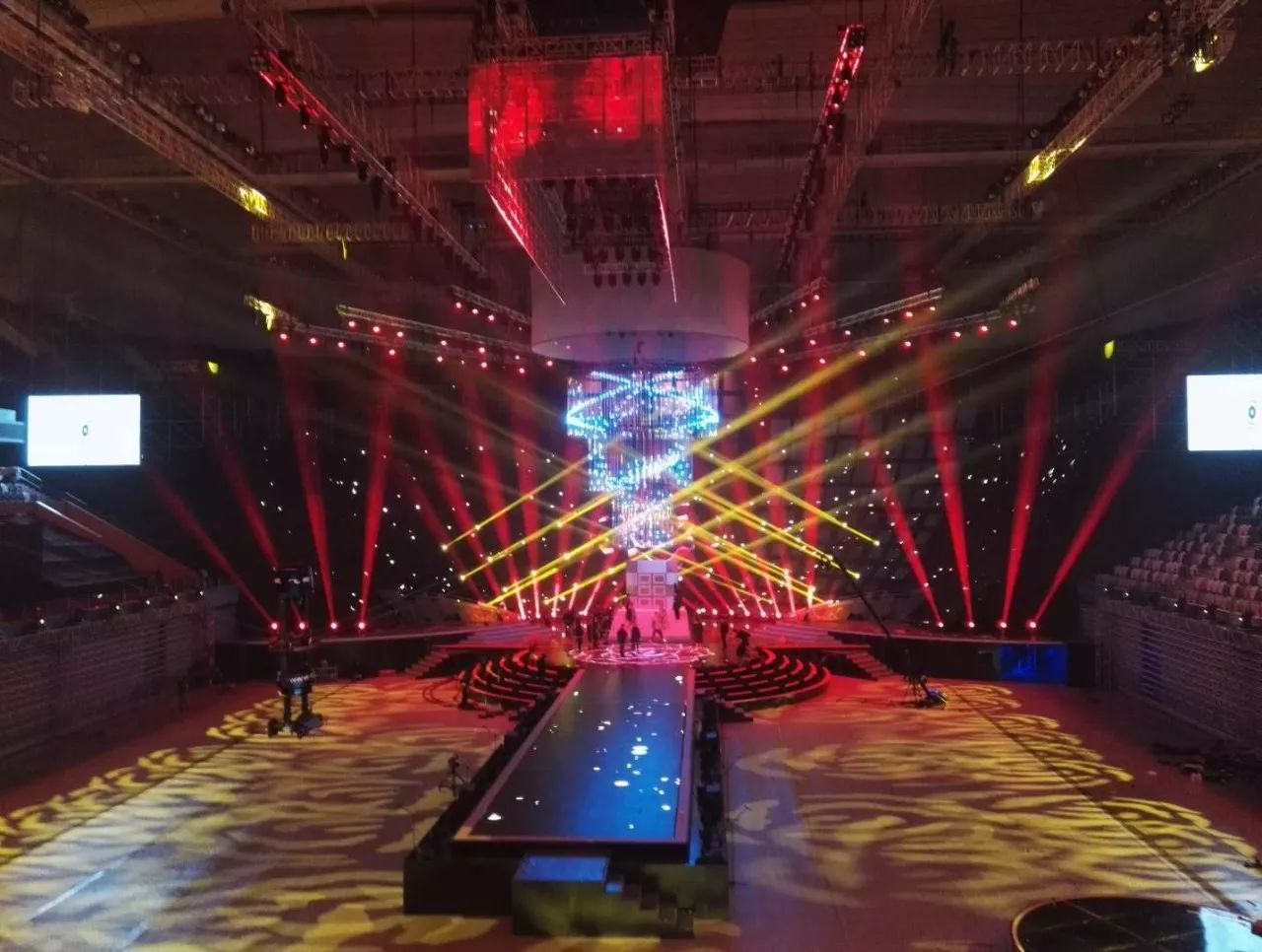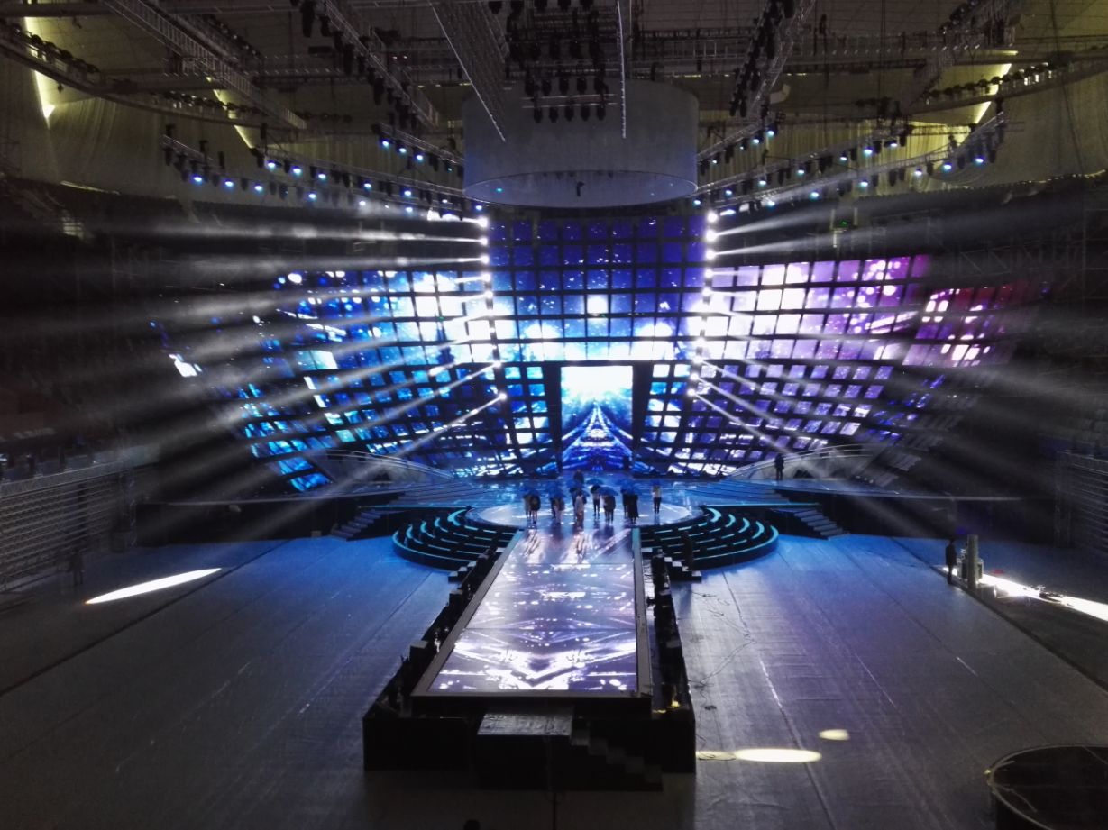 追求新亮點的江蘇衛(wèi)視今年刷新了演唱會舞臺:四面臺升級為360度全景巨型圓舞臺,給觀眾帶來前所未有的視覺沖擊;機械燈臂組成變形空間站,天幕地屏配合猶如浩瀚宇宙。根據(jù)比利時的燈光設計師Ignace介紹,去年所有構(gòu)造和場景都是為扁長型舞臺而設計,今年所有設計都是為了讓觀眾感受到前所未有的一種“沉浸感”,“(每一個區(qū)域)觀眾到舞臺距離一致,這和去年有很大的不同,觀眾的感受獨具一格,是宇宙的感覺。”