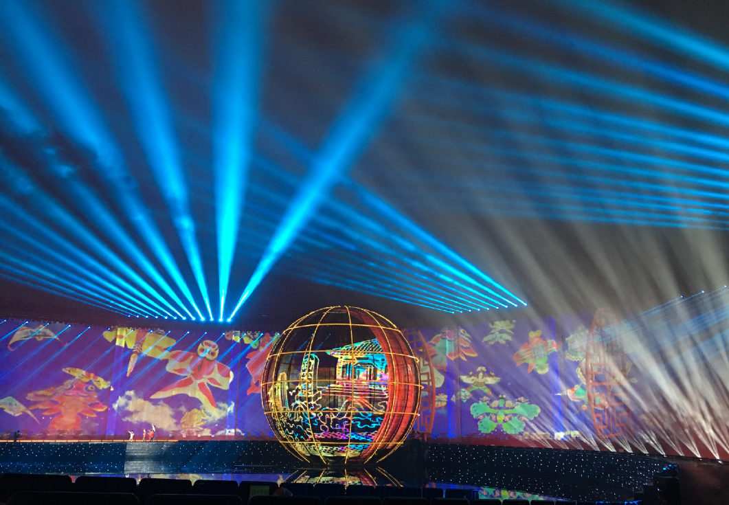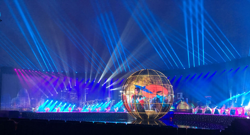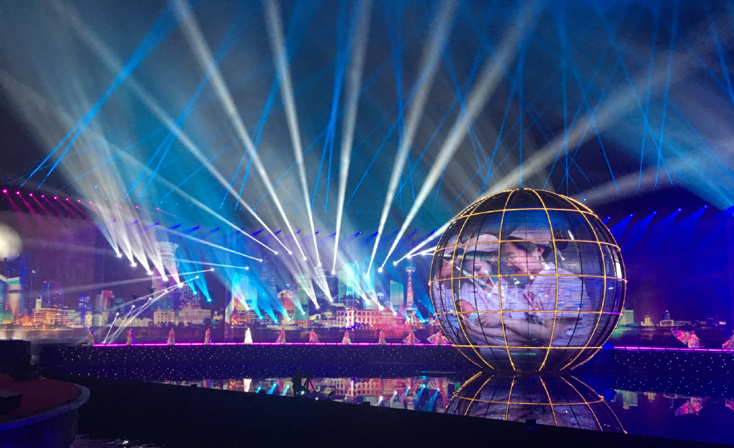 ? ? ? 特別在本次燈光焰火演出中,浩洋電子的飛燈系統依然成為了一大亮點,與眾不同的是,浩洋飛燈系統打破了“燈位不動,只有光在運動”的限制,讓電腦燈本身也運動起來,自由翱翔,實現從“光的運動”到“運動的光”著巨大的轉變。浩洋飛燈系統的研發是與2016年9月杭州G20峰會文藝演出《最憶是杭州》息息相關,當時的總制作人著名燈光設計沙曉嵐提出“舞蹈演員吊掛著威亞,從外湖飛入西湖演出舞臺”的設想,與合作方浩洋電子進行了大量的研發試驗,但由于西湖的地理位置限制,這個創意未能實現,研發的成果也保留了下來,最終在2017年的央視春晚桂林分會場實現了浩洋飛燈系統的全球首秀。在本次上海合作組織青島峰會燈光焰火藝術表演中,浩洋飛燈系統以創新科技化燈光震撼獻力國家重要演出活動,勾勒出一幅科技燈光與文化相融合的視覺美景。