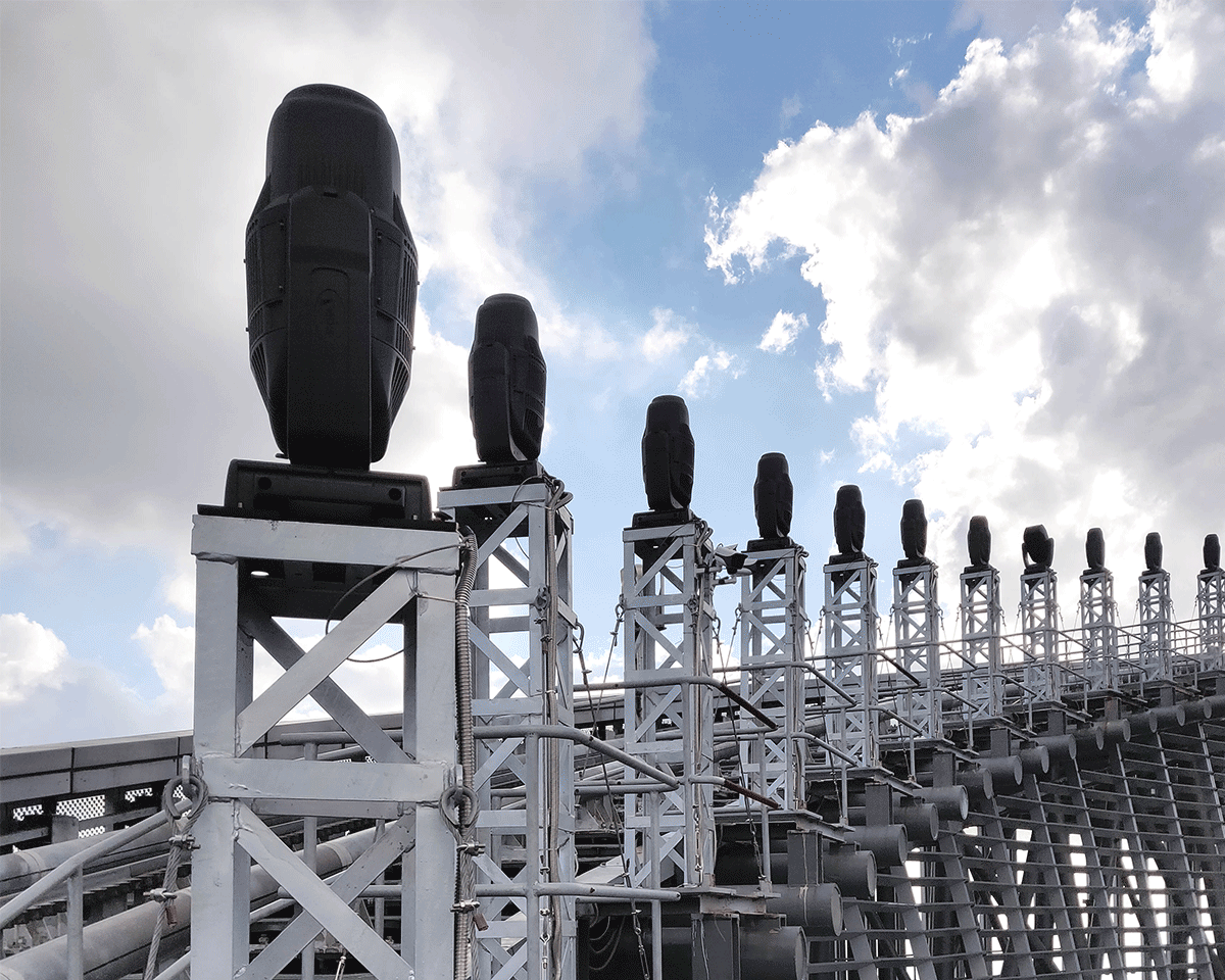 在創(chuàng)意設計方面,改造團隊除了根據(jù)上海中心大廈的建筑特點,進行藝術燈光的優(yōu)化設計和更新燈具設備外,還實施了三層設備層光束,在大廈避難層擦窗機軌道處設計鋼結構燈具設備升降收縮架,使演繹時改結構設備可收縮隱藏與升出,靈活操作。