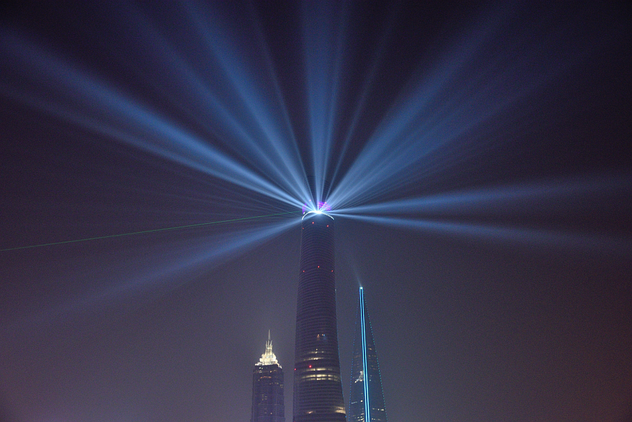 早于2015年初,浩洋的產品——轟天炮G10B就沖上云霄,被成功應用在上海中心大廈,塔頂G10B的強勁光束射向夜空,在夜色里顯得格外引人注目,成為炫彩燈光秀表演中的一大焦點。