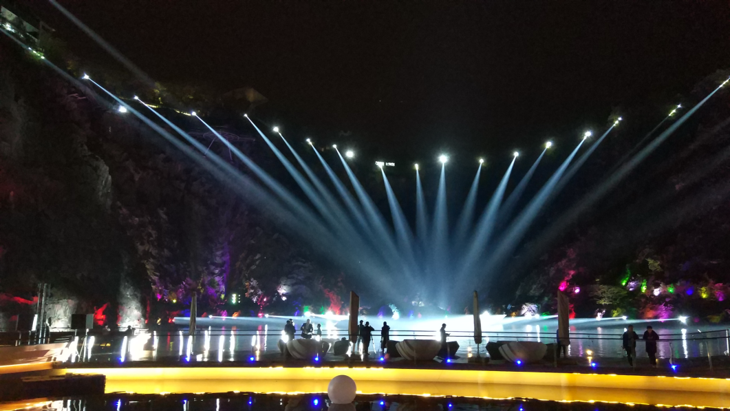 酒店沿崖壁而建,面向橫山,戶外工程環(huán)境復(fù)雜,其深坑巖壁的曲面造型,致使燈具懸崖運輸,特別是位于崖壁下的安裝工程,由于地理環(huán)境的限制,無法采取常規(guī)施工技術(shù)方案,為浩洋工程部增加了極大的工程施工難度。但我們的團隊并沒有氣餒,而是迎難而上,在確保高工藝水準(zhǔn)的情況下,以專業(yè)的工程專業(yè)技術(shù)能力和高度負(fù)責(zé)的態(tài)度,針對本項目特殊地勢制定專門的施工方案,克服了大范圍水上作業(yè)、高空懸崖作業(yè)安裝等重重困難,最終如期、高質(zhì)量的完成項目。另外,浩洋的團隊除了承擔(dān)燈光設(shè)備的安裝工作外,還積極參與整體控制系統(tǒng)的融合、同步控制工作,保證了總導(dǎo)演的設(shè)計理念得以完美實現(xiàn),打造出一場震憾的、聚集各種創(chuàng)意視覺的的奇境光影水秀。