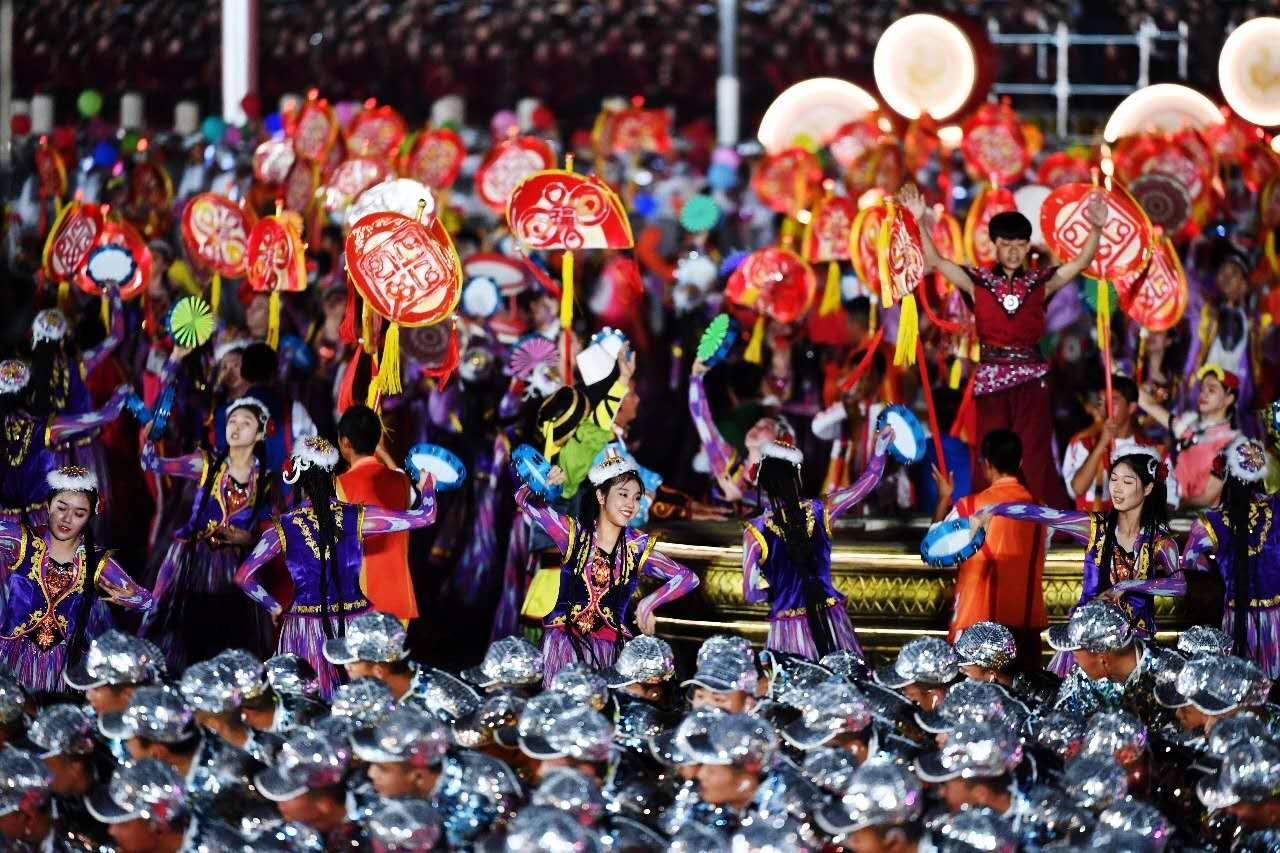 10月1日晚上,在天安門廣場舉行國慶70周年聯歡活動,14億人民的激情被點燃。其中聯歡活動由“紅旗頌”“我們走在大路上”“在希望的田野上”“領航新時代”4個篇章。整個活動由主題表演、中心聯歡表演、群眾聯歡和煙花表演四個功能表演區組成。據了解,今年的群眾聯歡活動由近6萬余名首都各界群眾組成