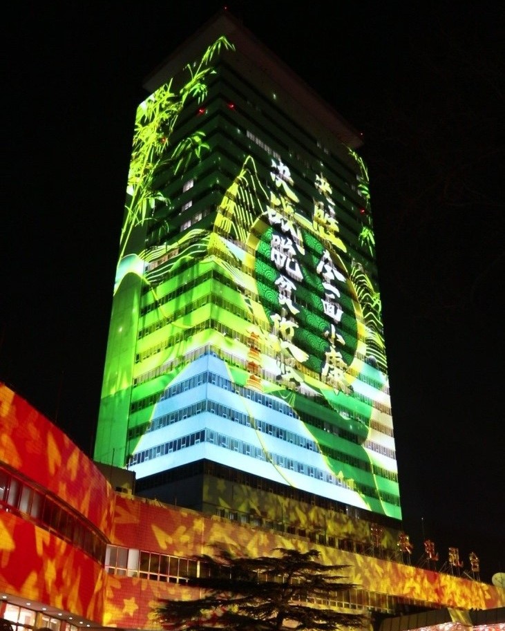 2020年的視覺創(chuàng)意燈光秀內(nèi)容共分為四個(gè)篇章,畫面制作融合了媒體科技、國事熱點(diǎn)、以及中華民族春節(jié)的傳統(tǒng)元素。畫面色彩多樣、內(nèi)容豐富、創(chuàng)意獨(dú)特、配合樓體上的投影設(shè)備及室外照明燈具營造了一場充滿春節(jié)喜悅氣氛的視覺創(chuàng)意燈光秀。