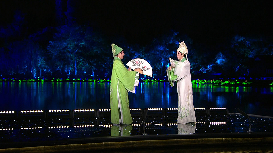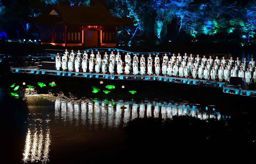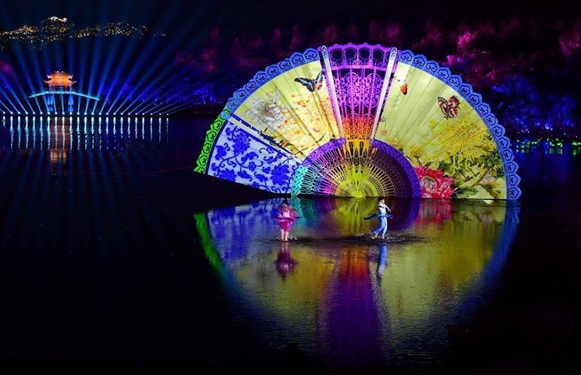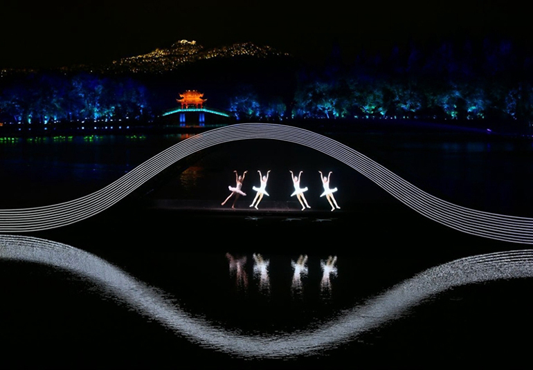 燈光是此次演出的一大亮點,晚會總導演張藝謀說:“50分鐘的演出我們有100個以上的燈光變化,要靠燈光、湖水倒景、月色等方方面面傳遞出詩情畫意。”作為2008年北京奧運會開閉幕式燈光總設計、2014年APEC歡迎晚宴活動燈光創意總監,此次G20峰會文藝演出的總制作人沙曉嵐,用燈光對西湖的山、水等自然元素進行藝術再創作,勾勒一幅驚艷世界的視覺美景。