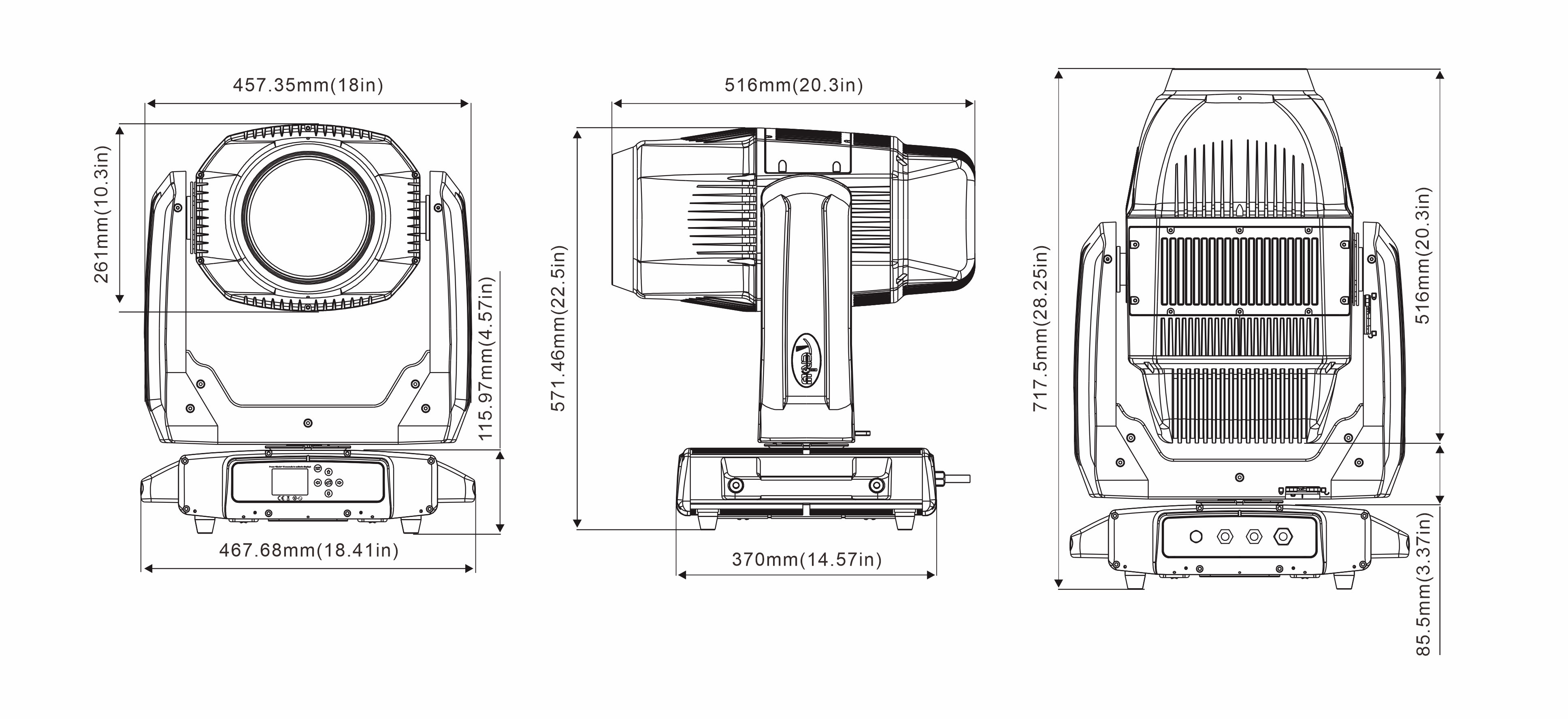 1個色片盤:14個色片+白光,半色效果,色片可任意定位,帶雙向旋轉的彩虹效果