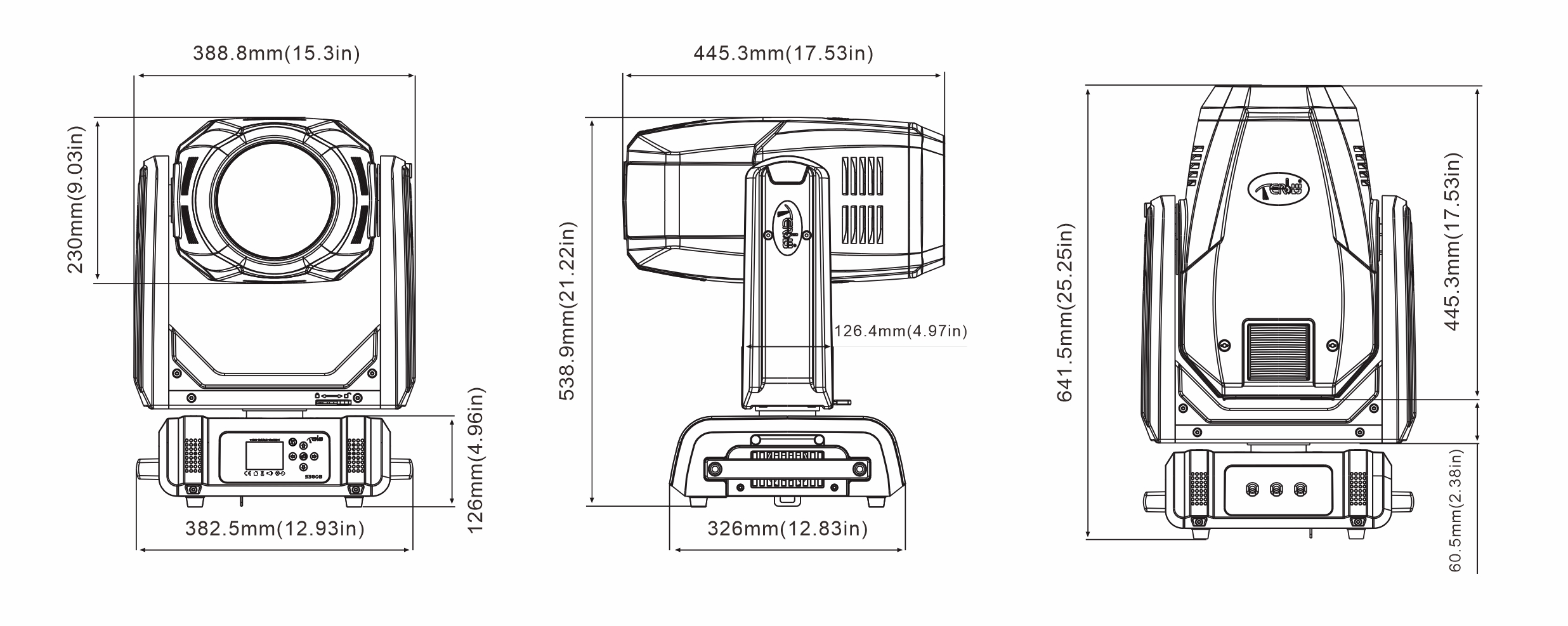 1個色片盤:14個色片+白光,CMY半色效果,色片可任意定位,帶雙向旋轉的彩虹效果