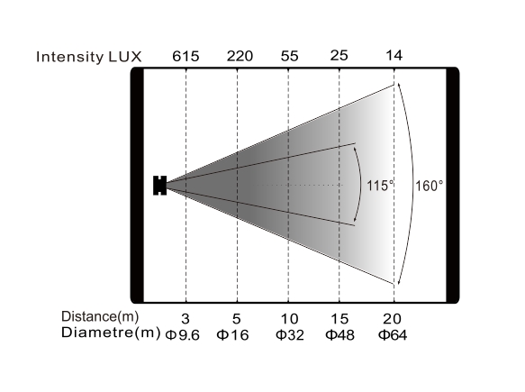 變焦范圍:光束角:115°,光斑角:160°
