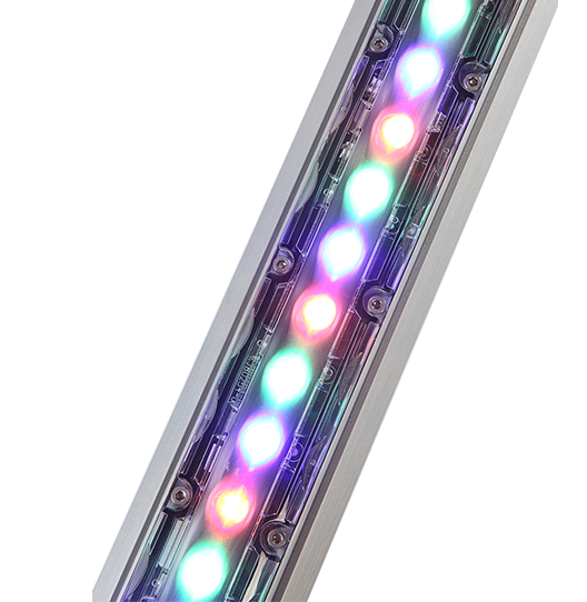 ELV-G 系列RGB / RGBW / RGBA /DW(冷白+暖白) LED染色燈是一款高功率條形燈,單臺燈長度可選1英尺(305mm)和4英尺(1229mm),采用國際通用的DMX512信號控制,順滑的線性調光,高亮度輸出, 高檔的外觀設計,可選不同角度的柔光片以及擋光防眩板,是戶外戶內渲染照明,面光燈的最佳選擇。